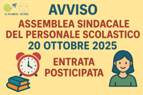 Si informano i genitori e gli alunni che, a seguito dell’adesione del personale della scuola alla riunione sindacale del 20 OTTOBRE 2025 le sezioni e le classi di seguito osserveranno i seguenti orari: