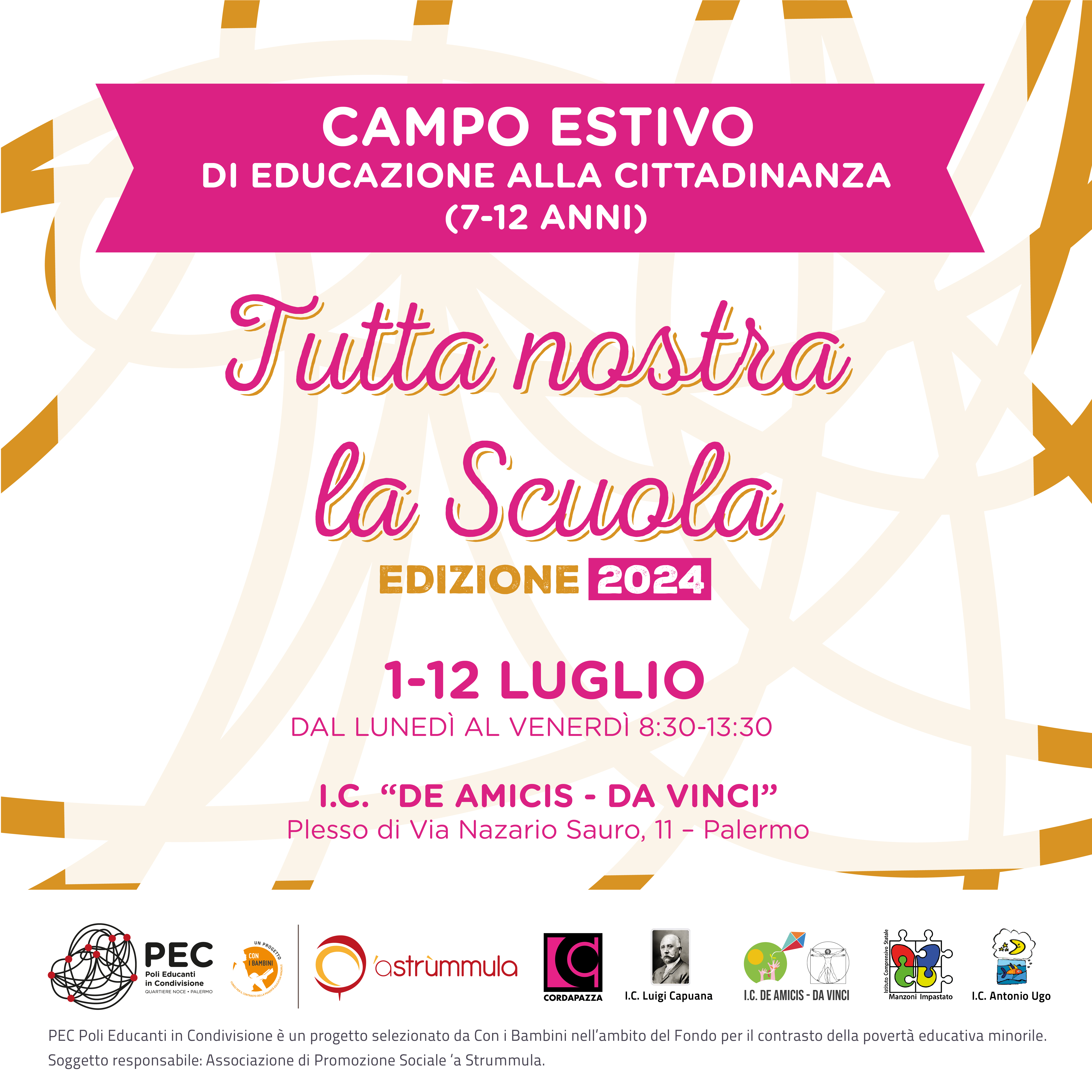 Tutta nostra la scuola è realizzato nell’ambito del progetto di azioni integrate P.E.C. - Poli Educanti in Condivisione di cui è soggetto responsabile l’Associazione di Promozione Sociale ‘a Strùmmula.